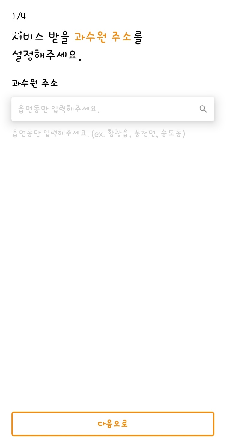 설치한 어플 로그인 -> 시작하기 -> 과수원주소 입력 -> 다음으로