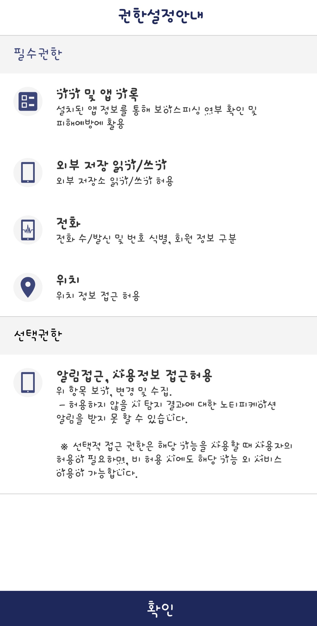 앱을 실행하고 필요한 권한을 허용합니다.