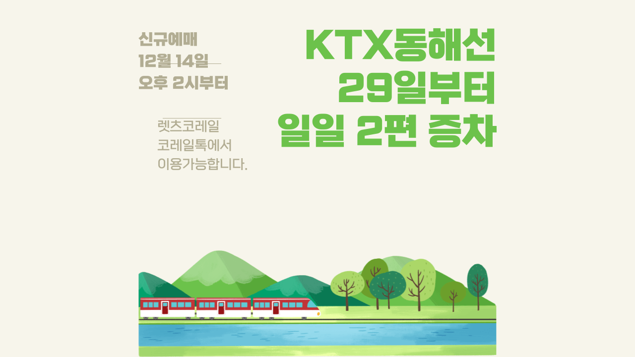 KTX 동해선이 주민과 관광객의 불편을 해소하고 효율성을 높이기 위해 29일부터 매일 2편을 증편하여 운행될 예정입니다. 현재 주중 운행 횟수의 한계로 불편을 겪고 있는 동해선이 새로 투입되는 열차와 시간 조정으로 인해 큰 기대를 받고 있습니다.