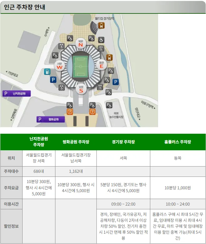 - 경기장 도로명 주소 : 서울 특별시 마포구 월드컵로 240