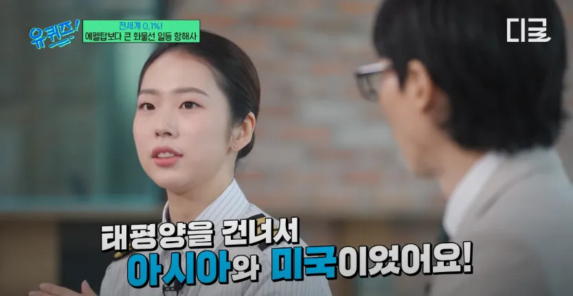 2023년 11월 14일 방영된 tvN '유 퀴즈 온 더 블럭'에서는 '문이 열리네요' 특집으로 전 세계 0.1% 여성 일등항해사 김승주 자기님을 초청했습니다. 김승주 자기님은 에펠탑보다 큰 배를 운전하는 멋진 여성 선장으로, 1만 개의 컨테이너를 싣고 지구를 서른다섯 바퀴 돌아온 경험을 가진 능력자입니다.