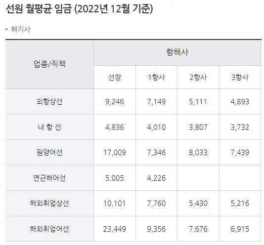 - 연봉: 1등 항해사는 억대, 2등 항해사는 8천만 원 이상, 3등 항해사는 5천만 원 이상