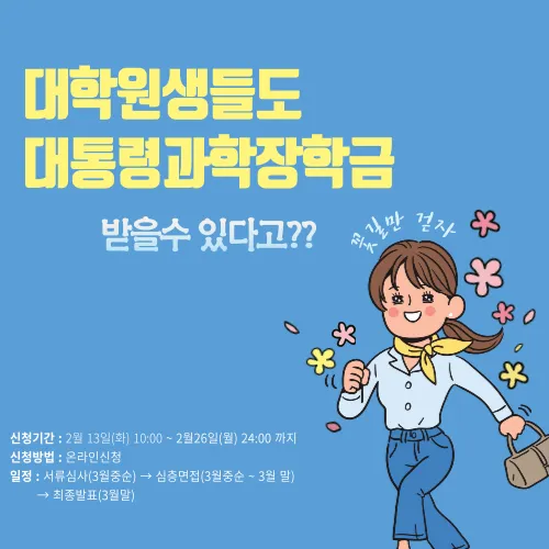 기존에는 주로 학부생을 대상으로 한 대통령과학장학금이 대학원생으로 확대되어, 연구분야에서 높은 역량을 보이는 학생들에게 지원의 기회를 제공합니다.