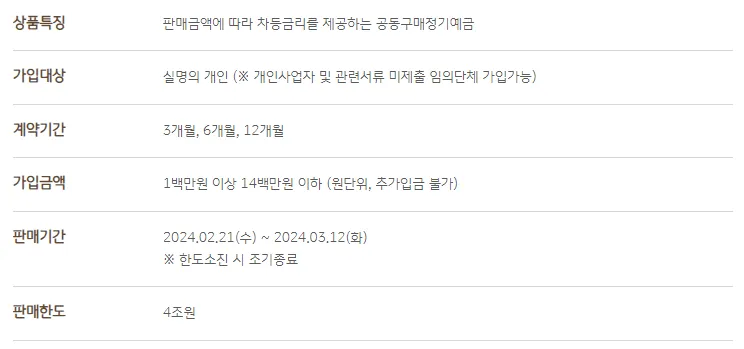 - 판매한도 : 총 4조 원 한도로 제한되어 있으므로 빠른 신청이 필요합니다.;